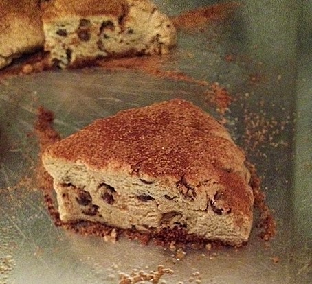 He produced an after dinner treat of scones for us and they delivered! He adapted a recipe from the Gluten Free Bible to be vegan. The recipe called for yogurt and John used soy yogurt. The end product was a success! They were dense and sweet, just like a scone should be. They reminded me of our time during college of studying abroad in Scotland. I remember in particular a breakfast place we went to where we enjoyed tea and scones. At the time we were vegetarian, not vegan, and had a breakfast of eggs, hash browns, tomatoes, and beans. We sat in a seat by the window and go to enjoy the view of a downtown Sterling street. That time will always be special to me. It was in 2000 and we were just starting off in our relationship as more than friends.